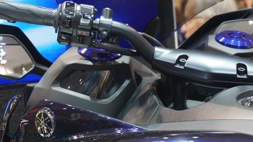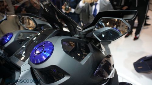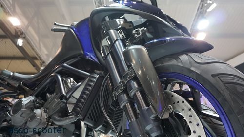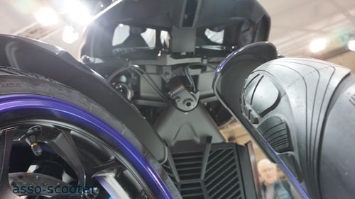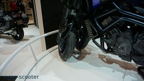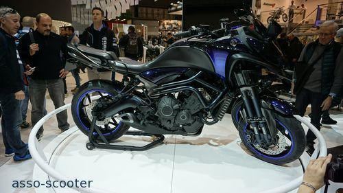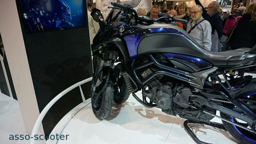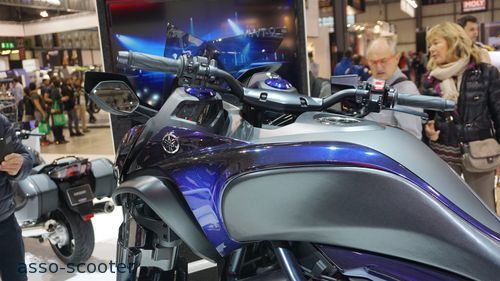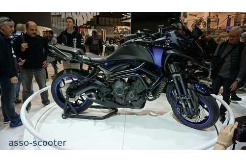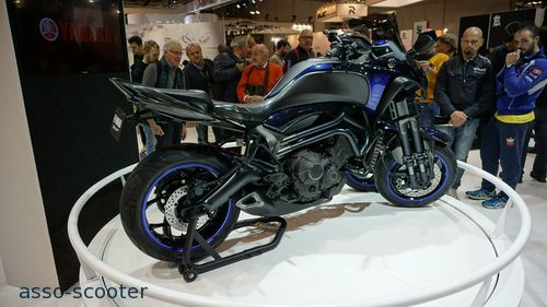 Mais la vedette incontestée, c’est le MWT-9, le scooter trois roues nourri aux amphétamines. Présenté au dernier salon de Tokyo, il est à Milan et semble prêt à la commercialisation. Avec un tel look et une telle motorisation Yamaha va convertir au trois roues nombre d’automobilistes et motards !