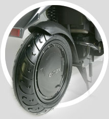 Développé par Emax pour son scooter électrique, le moteur prend place dans la roue arrière de 13 pouces.