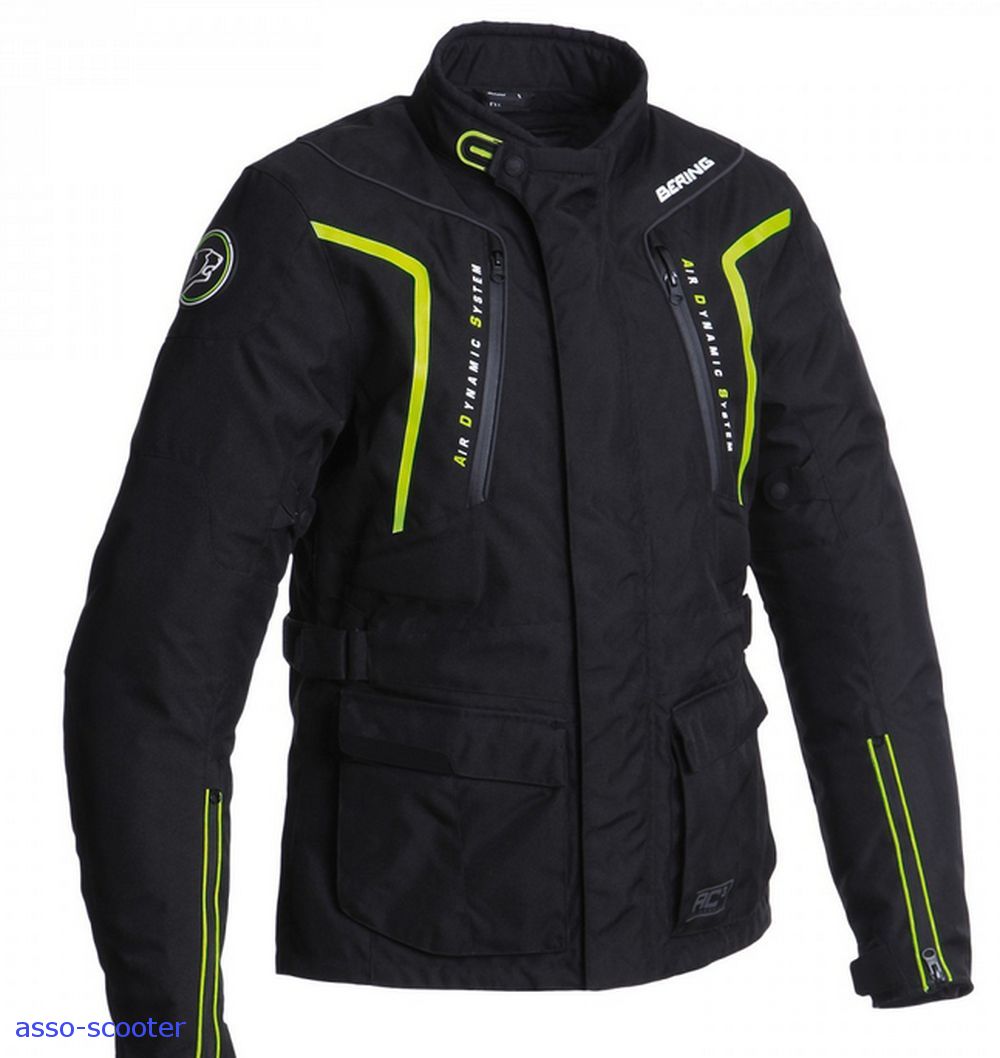 Le blouson existe en deux coloris mais le coloris ne concerne que les inserts sur la poitrine et les manches. Il y a le blouson BTV249 Noir/fluo et le BTV240 Noir. C’est ce dernier que nous avons essayé.