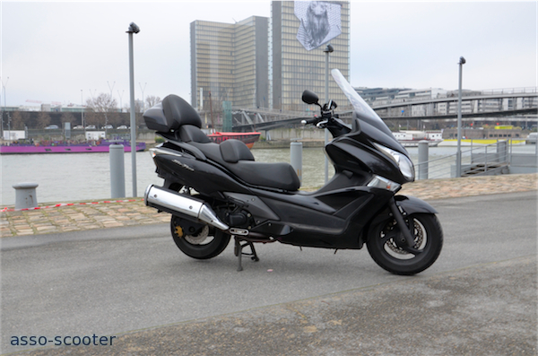 Sur le Burgman 650cc, la position est moins recrioquevillée, beaucoup d’espace pour s’étendre mais consommation légèrement supérieure.