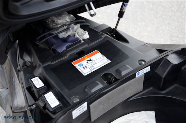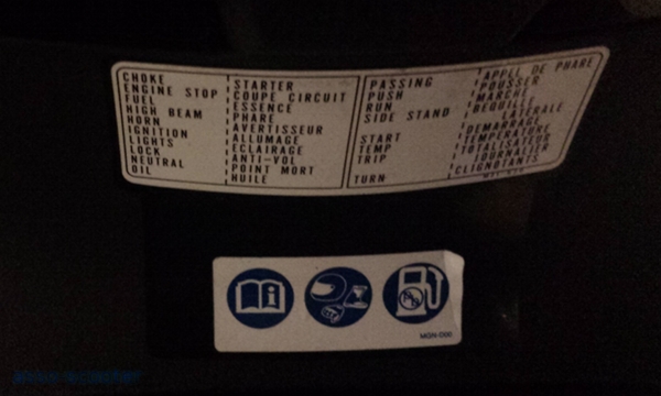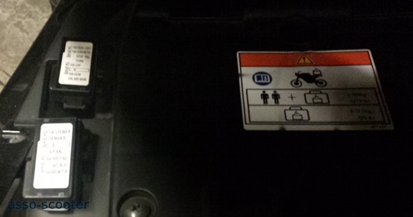 Honda a collé des pictogrammes sur le scooter pour rappeler quelques points essentiels : le poids maximum dans les boites à gants, dans le coffre, les consignes pour la batterie... Très bien fait et simple à comprendre.