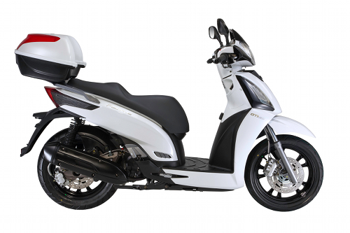 Le Kymco People 125cc GTI se fera plus facilement une place au soleil en Italie, pays friand de scooters grandes roues.