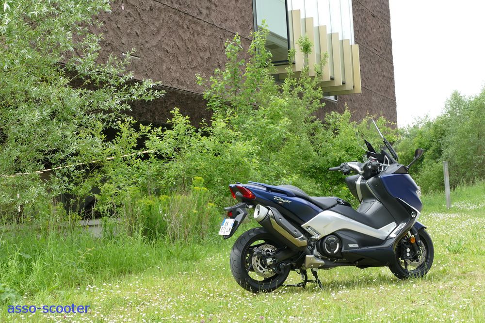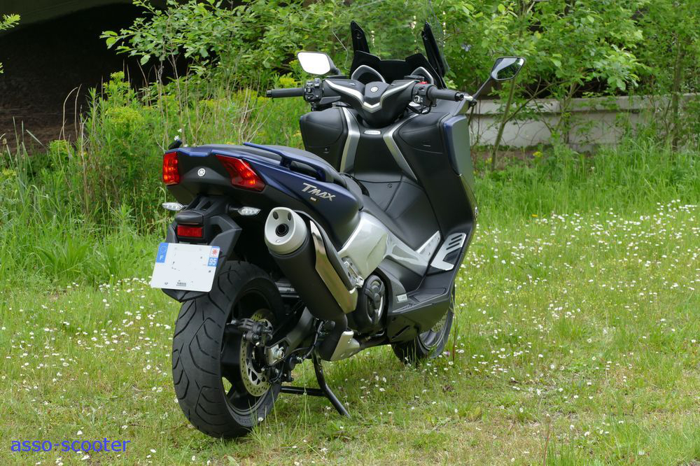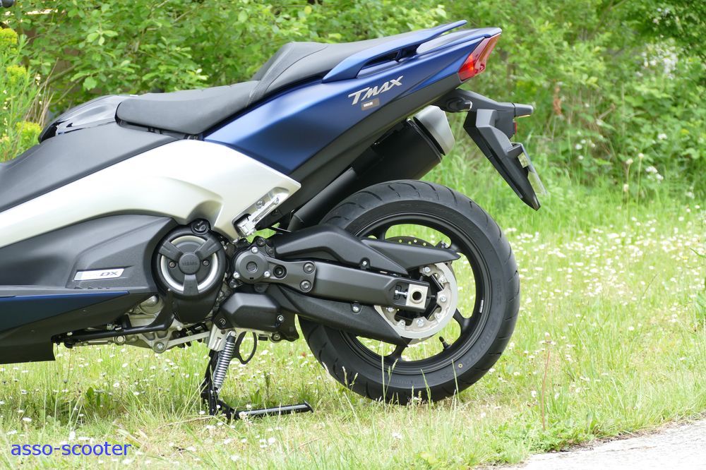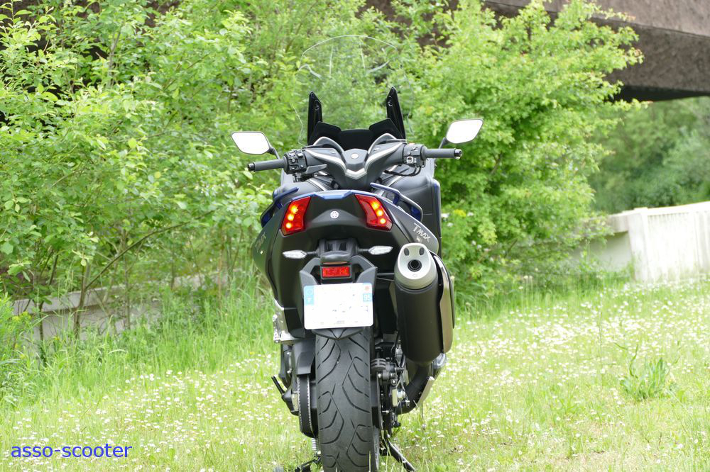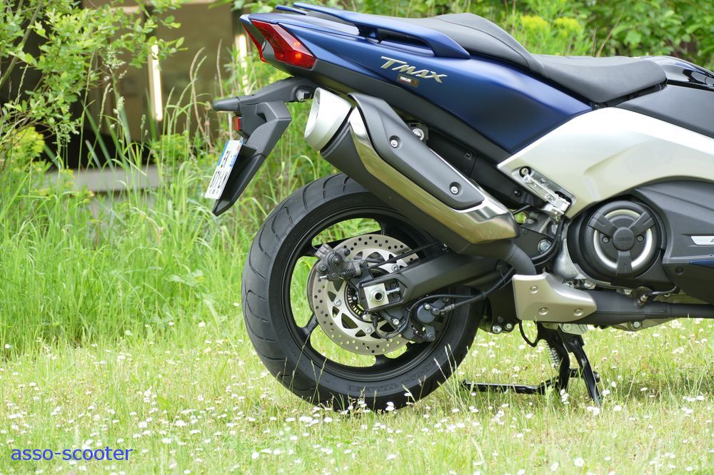 Enfin, Yamaha a conservé les basiques du T-Max : le son à l’échappement, même s’il est légèrement différent, et le pot qui pointent vers le ciel.