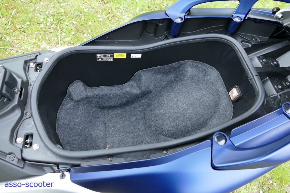 Parmi les autres nouveautés du millésime 2017, il faut noter la béquille centrale qui se bloque en même temps que le guidon, le coffre qui accepte un casque en taille XL en position inversée ainsi que quelques affaires, des feux arrières qui rappellent les sportives de la marque.