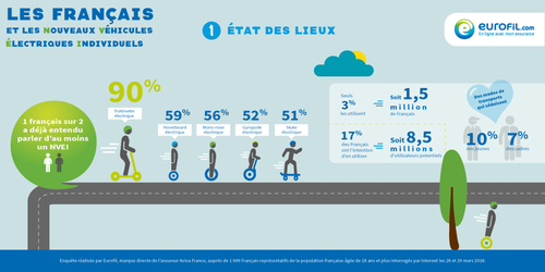 Les Français sont aujourd’hui 3 % à les utiliser, soit 1,5 millions d’utilisateurs, et ces nouveaux engins séduisent en particulier les jeunes (18-24 ans) ainsi que les cadres. Les premiers sont 10 % à en être déjà utilisateurs quand les seconds sont 7 %. Pour le moment, les non-utilisateurs demeurent largement sceptiques : 83 % d’entre eux n’ont pas l’intention d’utiliser les NVEI. Mais le potentiel existe puisque les 17 % restants représentent environ 8,5 millions de futurs usagers possibles.