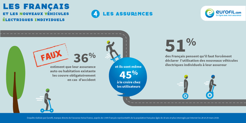 - 36 % des Français se trompent en imaginant que leurs assurances existantes (habitation ou automobile) les couvrent forcément en cas d’accident s’ils conduisent un NVEI. Une proportion étonnamment supérieure de près de 10 points (45 %) chez les conducteurs de NVEI eux-mêmes.