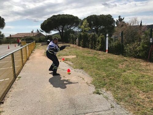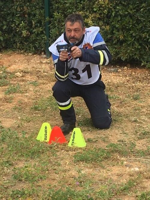 Les concurrents procèdent à un tir laser.