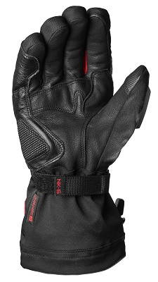 Du côté de la sécurité, les gants intègrent une coque supérieure en fibres composites associée à un insert ergonomique qui contribue à la fois à l’absorption des chocs et au confort. La coque est recouverte d’un matériau Superfabric qui assure une grande résistance à l’abrasion et favorise la glisse en cas de chute, réduisant ainsi le risque de lésion supplémentaire. Des renforts sur la paume et la tranche de la main complètent les équipements dédiés à la sécurité. Une zone en tissu extensible sur le dessus de la main, des articulations des doigts agissent pour le confort et une bonne préhension des leviers. Deux serrages, le premier au poignet avec velcro pour un bon maintien du gant et le second – de type tendeur - au niveau de la manchette rend le gant hermétique aux intempéries.