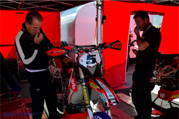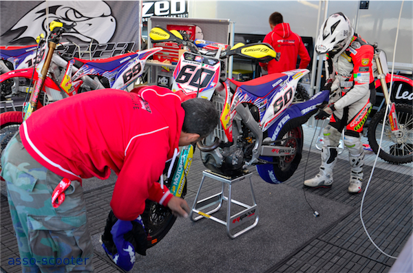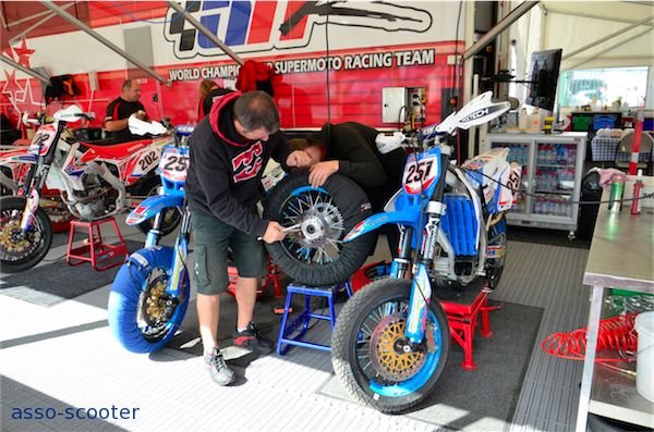 Dans les paddocks, entre deux courses, cette fois, ce sont les mécano et les techniciens qui sont mobilisés. Les machines sont auscultées, démontées et remises en état pour la prochaine course.
