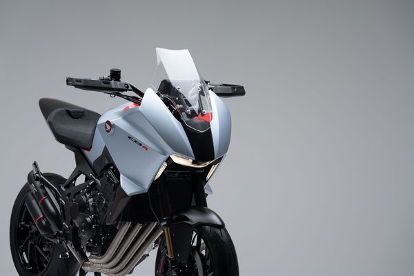 Sa motorisation est un classique 4 cylindres en ligne, la signature historique de Honda. Le réservoir de carburant se projette sur l’avant tandis que la bulle réglable est entièrement intégrée au carénage. Taillée comme un diamant et associée aux feux de jour DRL, l’optique avant ajoute une touche de sophistication agressive à la ligne d’ensemble.