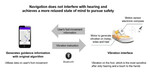 - La navigation est assurée par des vibrations au niveau du pied, afin de ne pas gêner la main de l’utilisateur qui tient une canne, ni les oreilles qui écoutent les sons ambiants.