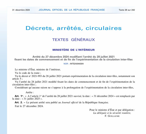Pour rappel, la phase d’expérimentation encadre précisément cette pratique d’interfile. Les axes doivent être à plusieurs voies séparées par un terre-plein central, axes rapides ou autoroutes.