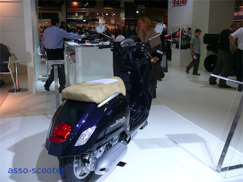 TGB cette année donnait dans le rétro et le sportif. Le rétro, c’est le scooter Bellavita, qui ressemble à une Vespa comme deux gouttes d’eau jusqu’à la fourche. Le Bellavita existe en deux cylindrées, 125cc et 300cc. Ce dernier bénéficie de l’injection. Le poids contenu des deux scooters, respectivement 125kg et 149kg, promettent des démarrages canons et une conduite aisée facilitée par des roues de 12’’.