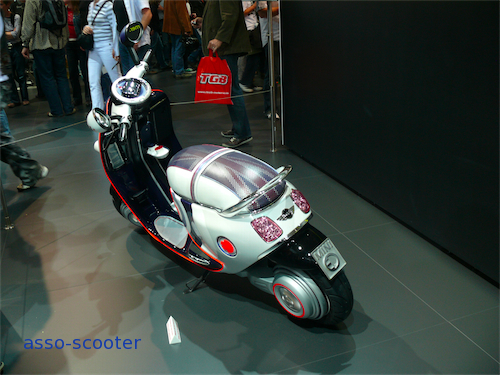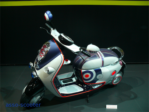 Chez Mini, l’avenir passe par l’électricité. Non pas pour la voiture mais pour le scooter. Le style Mini est là, jusqu’à la selle qui arbore l’Union Jack, tout comme les Mini qui l’ont sur le toit.