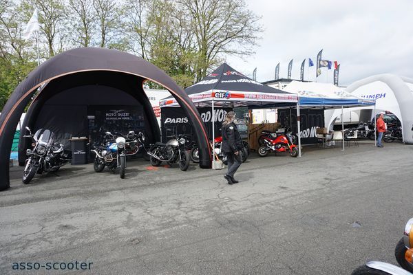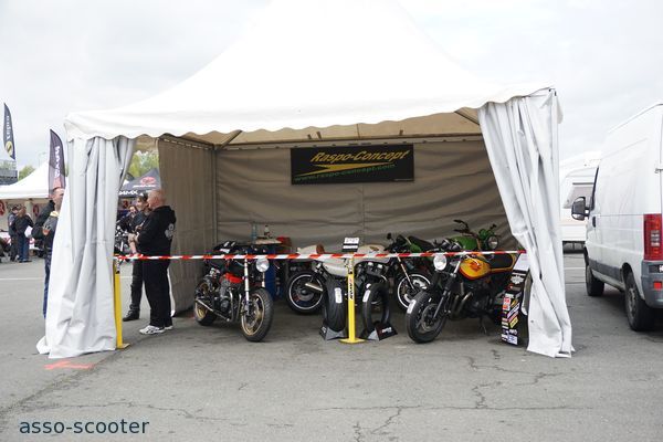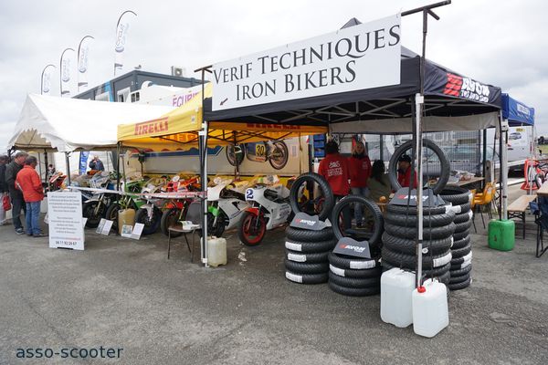 Cette bonne ambiance, décontractée et conviviale, elle se retrouve également dans les stands. Entre les clubs, la bourse d’échanges, les exposants pro, les préparateurs, les concessionnaires, les constructeurs, les accessoiristes et la scène des jeunes garages, il y ainsi plus de cent stands et exposants qui forment le village d’Iron Bikers, au centre du circuit Carole.