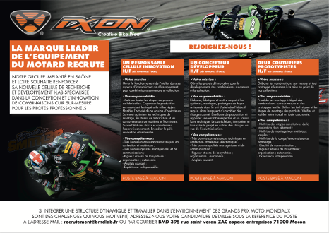 Ixon souhaite renforcer sa nouvelle cellule de Recherche et Développement Ï-LAB spécialisée dans la conception et l’innovation de combinaisons cuir sur-mesure pour les pilotes professionnels.