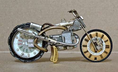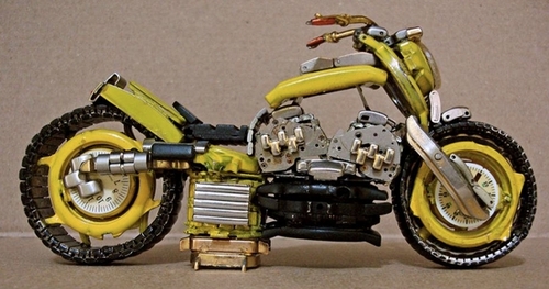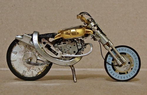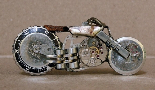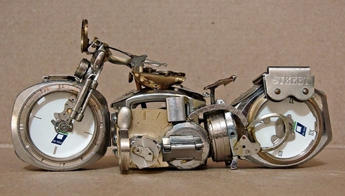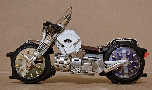En effet, ses créations ont comme matière première... des montres.