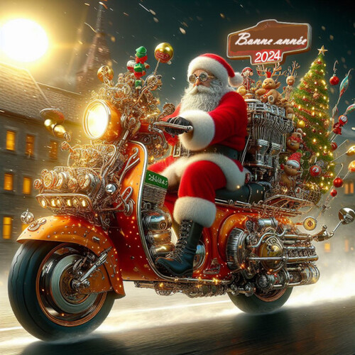 Encore quelques jours avant de prendre de bonnes résolutions pour 2024 et en attendant, oubliez tous vos soucis mais surtout pas la prudence et prendre soin de vos proches et de votre scooter.