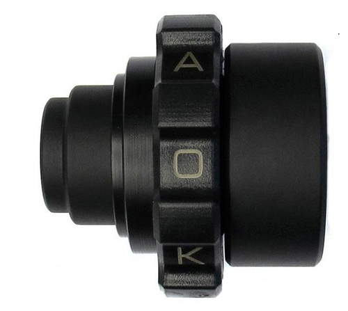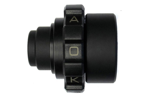 Le kit Kaoko est constitué d’un écrou spécifique et gradué associé à un embout de guidon spécifique. Ce nouvel ensemble vient en remplacement de l’embout d’origine sans surpoids ! Le principe du système Kaoko est relativement simple, ingénieux et robuste, puisque l’écrou vient exercer une légère pression sur la poignée dans la position souhaitée, suffisamment pour empêcher un retour automatique.