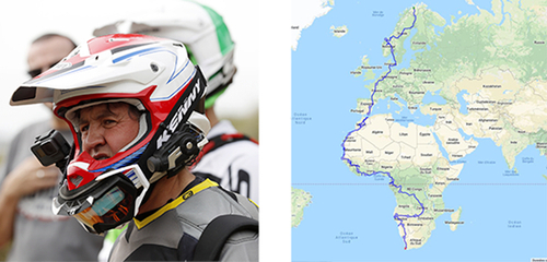 Son projet ? Relier Le Cap Nord (NordKapp) le point le plus septentrional d’Europe, au Cap de Bonne Espérance, la pointe extrême de l’Afrique du Sud au profit de Mécénat Chirurgie Cardiaque.