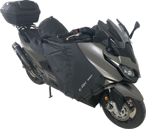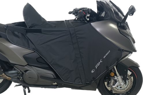 Avec l’arrivée du AK Premium et des premiers accessoires tels que le support de Top-case et le support de smartphone, d’autres plus spécifiques en prévision de l’hiver suivent, à commencer par le tablier amovible. Kymco avec le AK Premium orienté Sport-GT n’oublie pas les clients commuters qui utiliseront leur maxiscooter cet hiver. Pour se protéger des intempéries un tablier sur-mesure fait son entrée dans le catalogue d’accessoires.