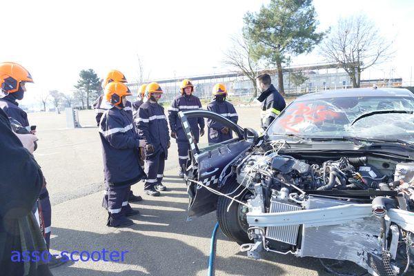 L’atelier Extraction est certainement celui qui est le plus impressionnant et celui qui a suscité le plus de questions de la part des participants. Cet atelier, comme a plupart des autres, fait appel à une technicité impressionnante. Pour extraire un pilote de F1 par exemple, il faut cinq personnes. Chacun accomplit des gestes bien précis, avec comme priorité immobiliser la tête du pilote. Dans le cas d’une F1 dont le siège est sur-mesure pour le pilote, l’extraction répond au même impératif mais va plus vite. Le plus impressionnant est quand l’équipe Extraction 72 a opéré une extraction rapide. Immobilisation de la tête est toujours importante mais moins que le fait de sortir le pilote.
