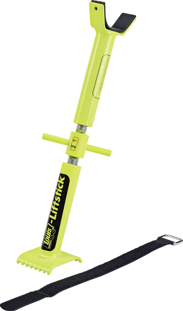 Voilà un petit outil malin ! À l’heure où les béquilles centrales d’origine se font rares, le Liftstick de Louis s’avère être un accessoire ultra pratique pour lever l’arrière de votre moto et graisser votre chaîne en toute simplicité. Il suffit de bloquer le frein avant avec une petite courroie fournie, de glisser le Liftstick sous le bras oscillant et de tourner le petit levier central qui agit sur le filetage. Presque 10 fois moins cher qu’une béquille centrale en accessoires, l’accessoire, à commander sur , vaut franchement le coup. Tarif : 29,99€.