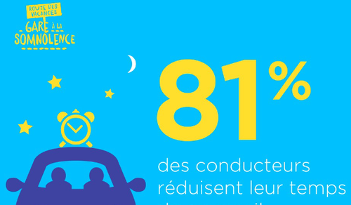 Cette année, 55 % des Français2 qui partiront en vacances en voiture rouleront plus de 500 km. Pour parcourir ces longues distances, ils sont 81 % à modifier leur temps de sommeil en vue du départ ; en se levant plus tôt ou se couchant plus tard. Des changements qui engendrent des risques importants de somnolence au