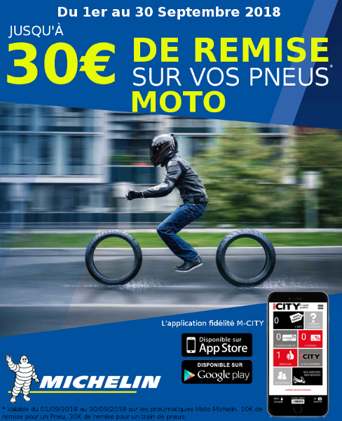 En septembre, et parce que c’est l’occasion de mettre en application les bonnes résolutions de la rentrée, Mondial City propose une promotion sur les pneus Michelin moto et scooters.