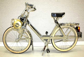 Parmi les raretés, nous avons ainsi remarqué une KOELHER ESCOFFIER KLS 5 1939. Un Solex presque entièrement chromé. Il comporte 1 437 pièces chromées et avait été exposé au salon Motos de Légende.
