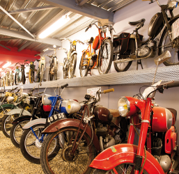 La Grange à Bécanes s’est installée dans une ancienne grange de 750m2, réhabilitée et dédiée entièrement à l’histoire de la moto. Grâce à une scénographie particulièrement originale, cette collection unique est parfaitement mise en valeur. Elle illustre l’histoire des deux roues et de leurs évolutions.