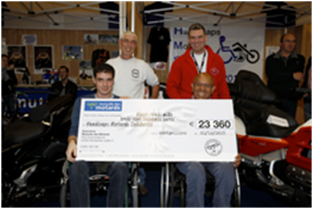 Ce chèque, dont le montant représente deux ans de parrainage, va permettre à Handicaps Motards Solidarité de poursuivre ses actions auprès des conducteurs de 2-roues handicapés en développant des machines adaptées, en leur permettant de valider leur permis 2-roues et en prouvant aux pouvoirs publics que la passion de la moto peut se pratiquer même avec un handicap physique.