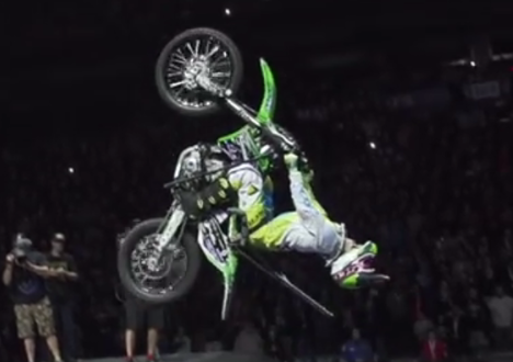 Lors du Nitro Circus Live à Toronto le mercredi 14 Octobre 2015, le Canadien Bruce Cook a fait vibrer le public avec une tout premier essai mondial : le premier backflip en moto par un paraplégique.