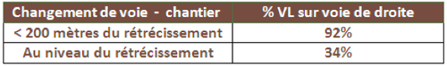 plus d’1/3 des conducteurs roulent au-dessus de la vitesse autorisée. - L’utilisation des voies de circulation est elle aussi souvent inadaptée : 37% des véhicules circulent sur la voie du milieu alors que celle de droite est libre (sur les autoroutes à 3 voies).