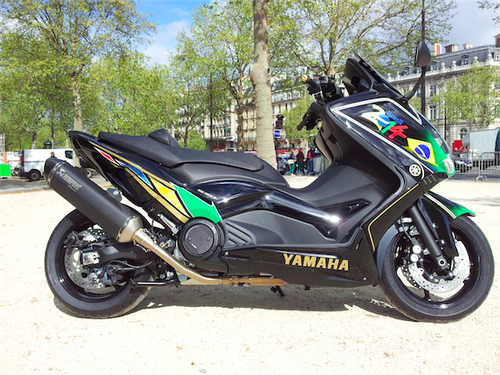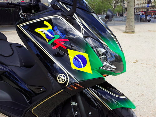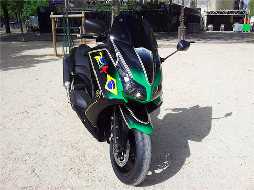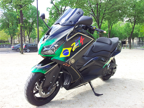 A moins de deux mois du coup d’envoi de la Coupe du Monde 2014 de Football, la concession Patrick Pons Grande Armée, spécialiste des préparations sur T-Max, a décidé de mettre le Brésil à l’honneur ! Associée à BCD Design, créateur et fabricant français de pièces de carénage modifiées pour motos et scooters, la concession parisienne nous propose ici une version colorée du maxiscooter.