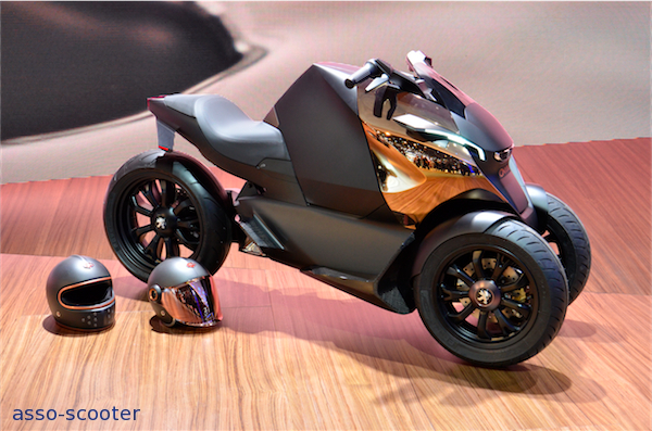Au salon, Peugeot Scooters présente le concept scooter Onyx. Un scooter hybride doté du moteur thermique maison.