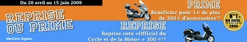 En ce qui concerne la prime, elle consiste, en échange d’1 ? symbolique, de voir son scooter doté d’accessoires à choisir dans la liste disponible en concession.