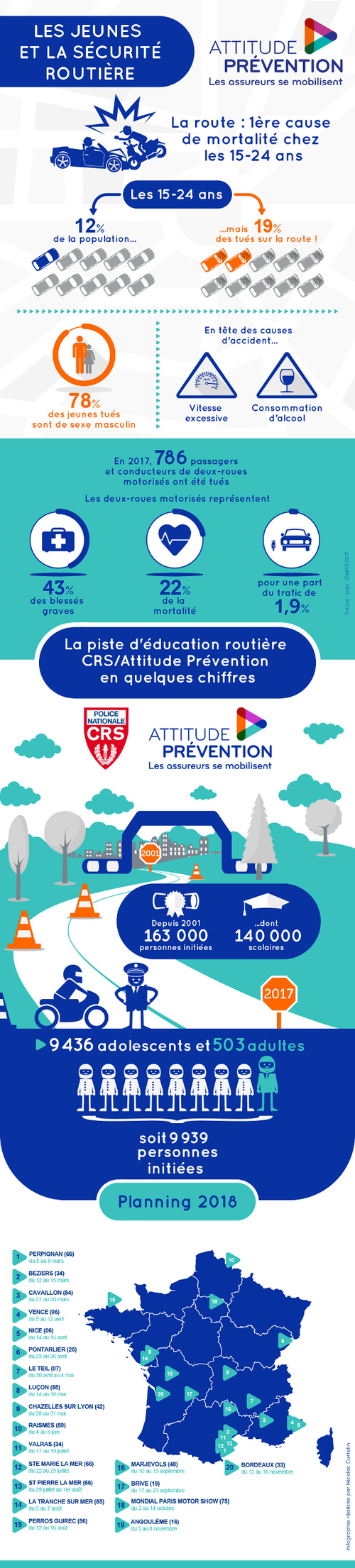 Piste d’éducation Routière CRS/Attitude Prévention : tournée d’été 2018, villes et dates