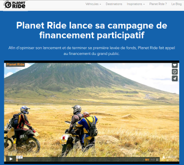 « A l’image de tous les partenaires fédérés autour de notre projet, simplement humains, voyageurs et passionnés, Planet Ride souhaite partager son expérience de voyage avec le plus grand nombre. Notre start-up ouvre donc son capital au financement participatif. Proposée au grand public, cette campagne collaborative renforce les liens avec notre communauté. » selon Baptiste Frérot, Co-fondateur et Directeur Général de Planet Ride.
