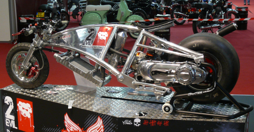 Au salon Pts 2009 (Personnalisation - Transformation - Sports Mécaniques, nouveau nom du Paris Tuning Show), les deux roues se suivent et ne se ressemblent surtout pas.