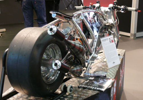Exception, c’est aussi le cas des motos de Dub Performance, « le French Custom Builder ». Cette moto entièrement réalisée « main » développe 180Cv pour une cylindrée de 2.2 litres et un couple de 25mkg. Autour du moteur, toutes les autres pièces sont réalisées spécialement pour le Proto Slug.