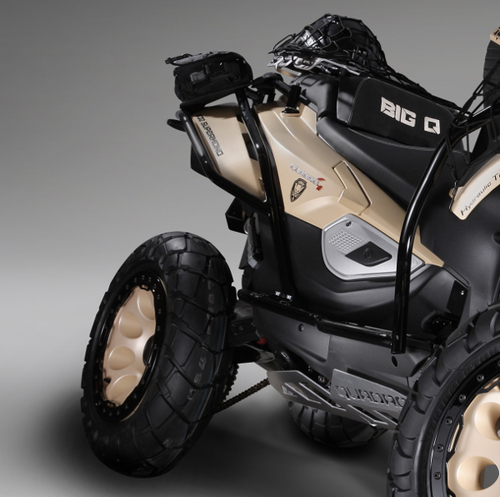 En effet, la plateforme Quadro4 est évolutive et permet d’imaginer sans mal des véhicules de plus grosses cylindrées, mais aussi de les faire évoluer pour des usages plus intensifs et pourquoi pas en dehors des sentiers battus.