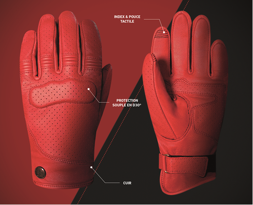 Le gant SHIRLEY se distingue par un design féminin alliant finesse, authenticité et protection. Sa conception très ajustée en cuir pleine fleur microperforé intègre une coque de protection souple en D30® au niveau des métacarpes.