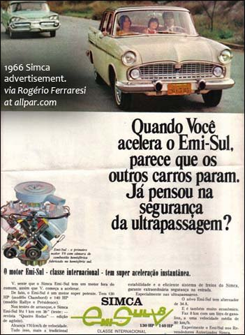 Ultime évolution de la Simca V8 Chambord française, la Simca Do Brasil est propulsée par un moteur culbuté de 140 CV et est équipée d’une boite 6 vitesses.