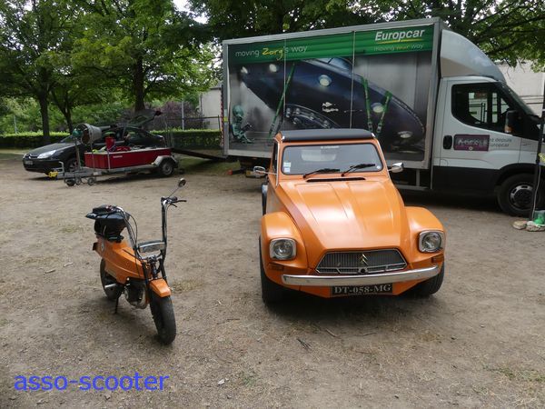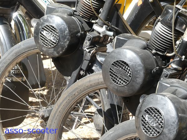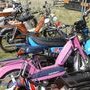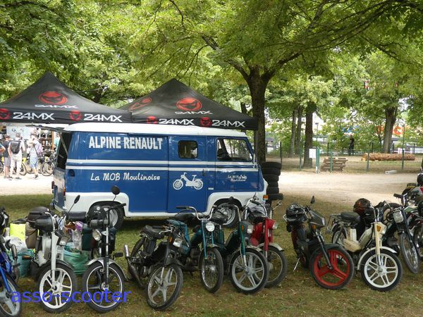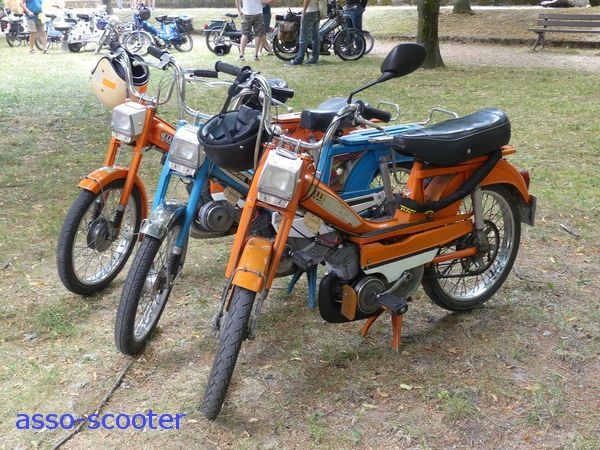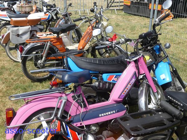 Il y a bien quelques motos, quelques voitures mais elles sont immobiles, en exposition. Les vraies, celles qui roulent sont bleues, oranges, blanches, grises, et s’appellent Motobecane, Peugeot, Solex… Avec elles, pas de records de vitesses, quoique… mais une vie pleine de charme, de lenteur et de douceur de vivre.