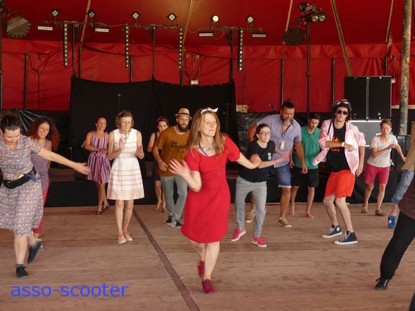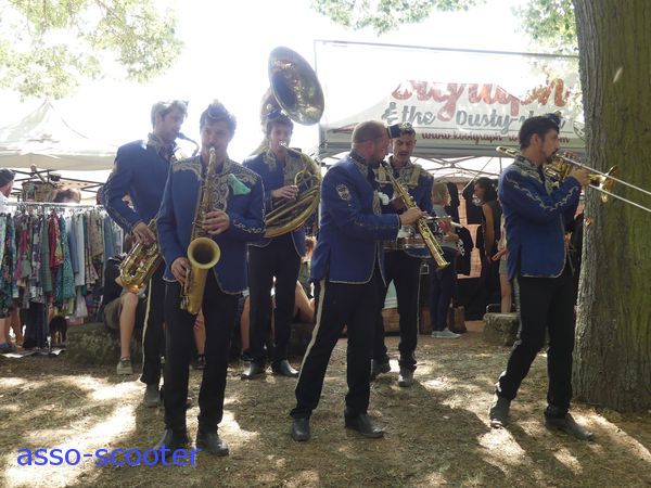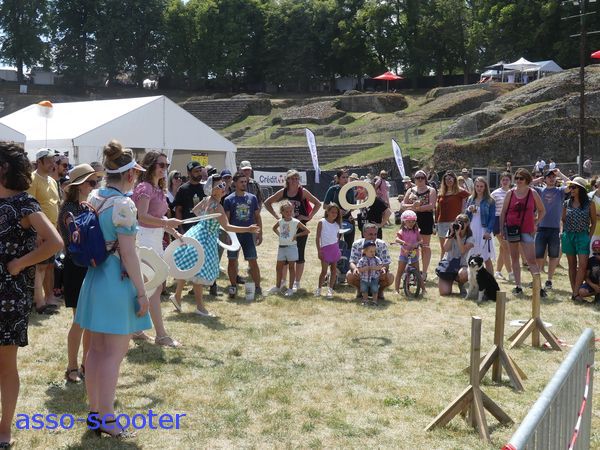 Enfin, grand moment de la journée, la parade de mobs a réuni cette année plusieurs centaines de mobs qui ont défilé dans les rues d’Autun avant de revenir au camp de base. C’est dans un joyeux empressement que les participants se sont rassemblés puis démarrés. La longue colonne n’en finissait pas d’avancer dans un concert de klaxons, cornes et de moteurs en furie, ou presque. L’ambiance est plutôt vintage et les tenues des unes et des autres ne se prêtent pas aux démonstrations de puissance. C’est au contraire un festival où le temps prend son temps. Le théâtre romain qui sert d’écrin au Rock’a’bylette Circus ne dira pas le contraire, lui qui a dû en voir des représentations…
