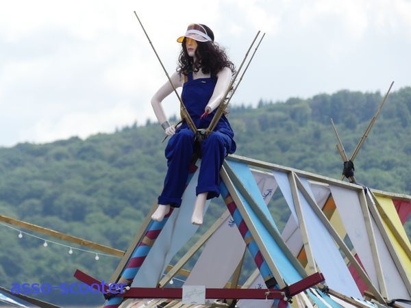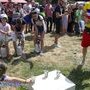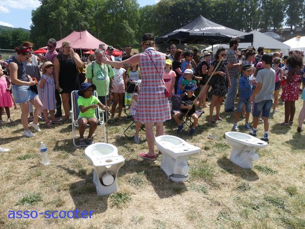 Les animations sont confiées à la Compagnie de Chap. Les compères, Martine, Kiki, Yvon et Mathieu subliment l’univers décalé et déjanté de Rock’a’bylette Circus. Ce n’est jamais grossier, toujours drôle et plein d’attentions. Avec leur accent savoyard et leur accoutrement, ils sont déjà un spectacle. Le lancer de moteur, de mobylette, bien sûr, est un vrai show où les lanceurs participent avec joie. Après tout, ce sont eux les vedettes. Avec les jeux de chiottes, on frôle le non-sens britannique. Les enfants qui y participent sont beaucoup plus sérieux que les adultes ! Mais tout le monde rigole et s’amuse, à en oublier le soleil qui tape.