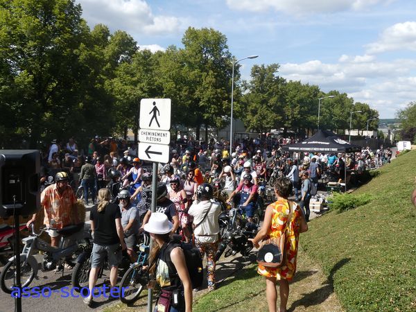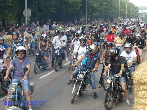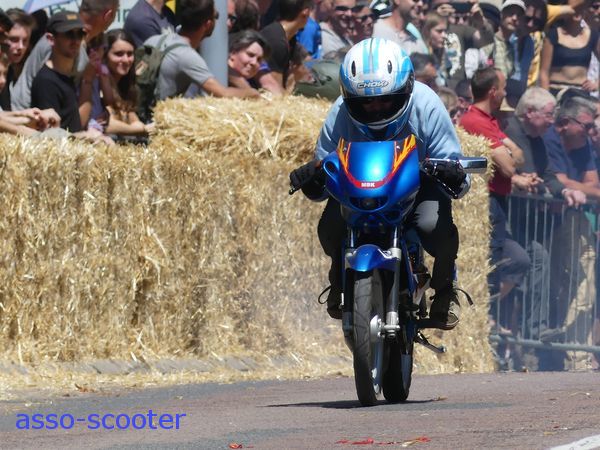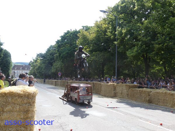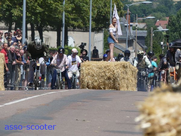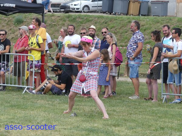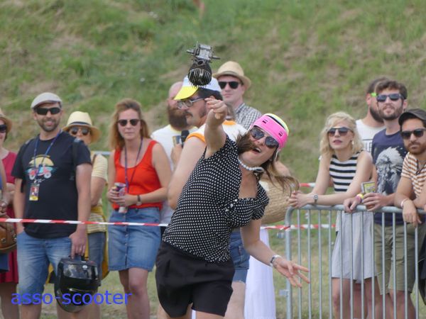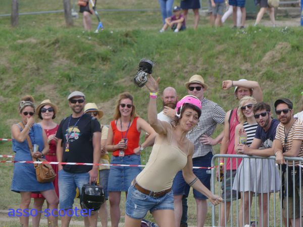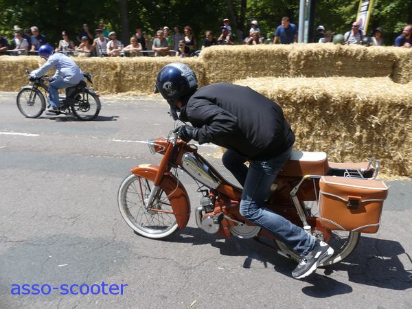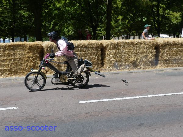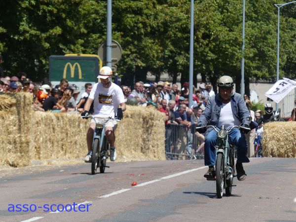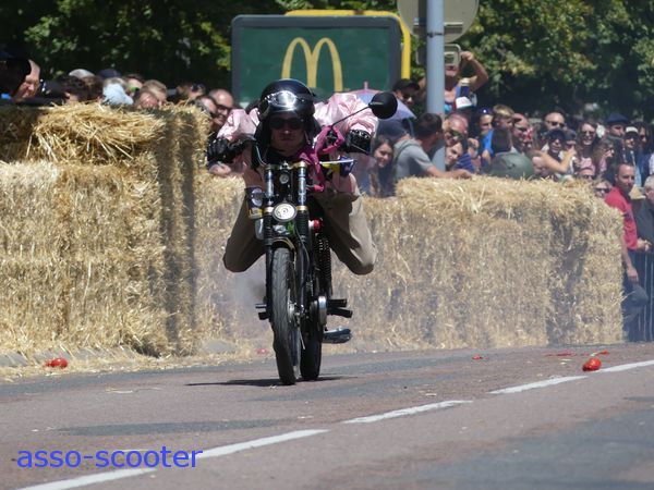 Côté moteur, il y a le saut de bus, le départ arrêté et la parade. Le départ arrêté de mobs est un vrai spectacle. Sur la rue des Marbres, les mobylettes doivent s’élancer par paires et rallier un point opposé, le plus rapidement possible. Le premier arrivé a gagné. Mais avant, il faut se vêtir car même dans cette « compétition », rien n’est sérieux. D’ailleurs, il n’y a pas vraiment de gagnant. Dans cette arène romaine, l’essentiel est de participer comme le dirait Pierre de Coubertin.
