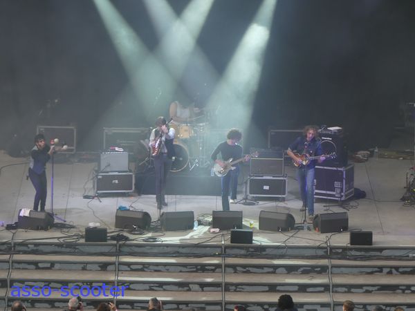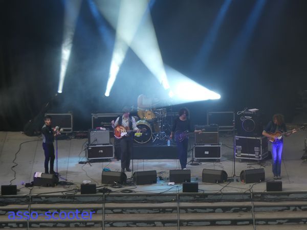 Pendant le changement de matériel des groupes, la scène est éclairée. Comme il faut nuit maintenant, du haut des gradins du théâtre romain, elle attire tous les regards, comme un aimant. Après la chaleur de la journée, la fraîcheur de la nuit fait du bien et cette pause silencieuse nous permet de reprendre des forces.