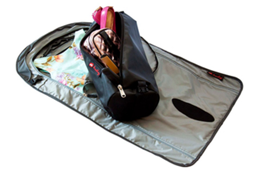 Le sac comporte une housse centrale pouvant accueillir une veste, une chemise et un pantalon ou une robe, ainsi qu’une poche extérieure zippée pour le transport d’objets, tels qu’un ordinateur ou une tablette. Cette pochette se révèle bien pratique lors de déplacements en avion, car les appareils électroniques et les liquides, devant être inspectés avant l’embarquement, sont facilement accessibles.